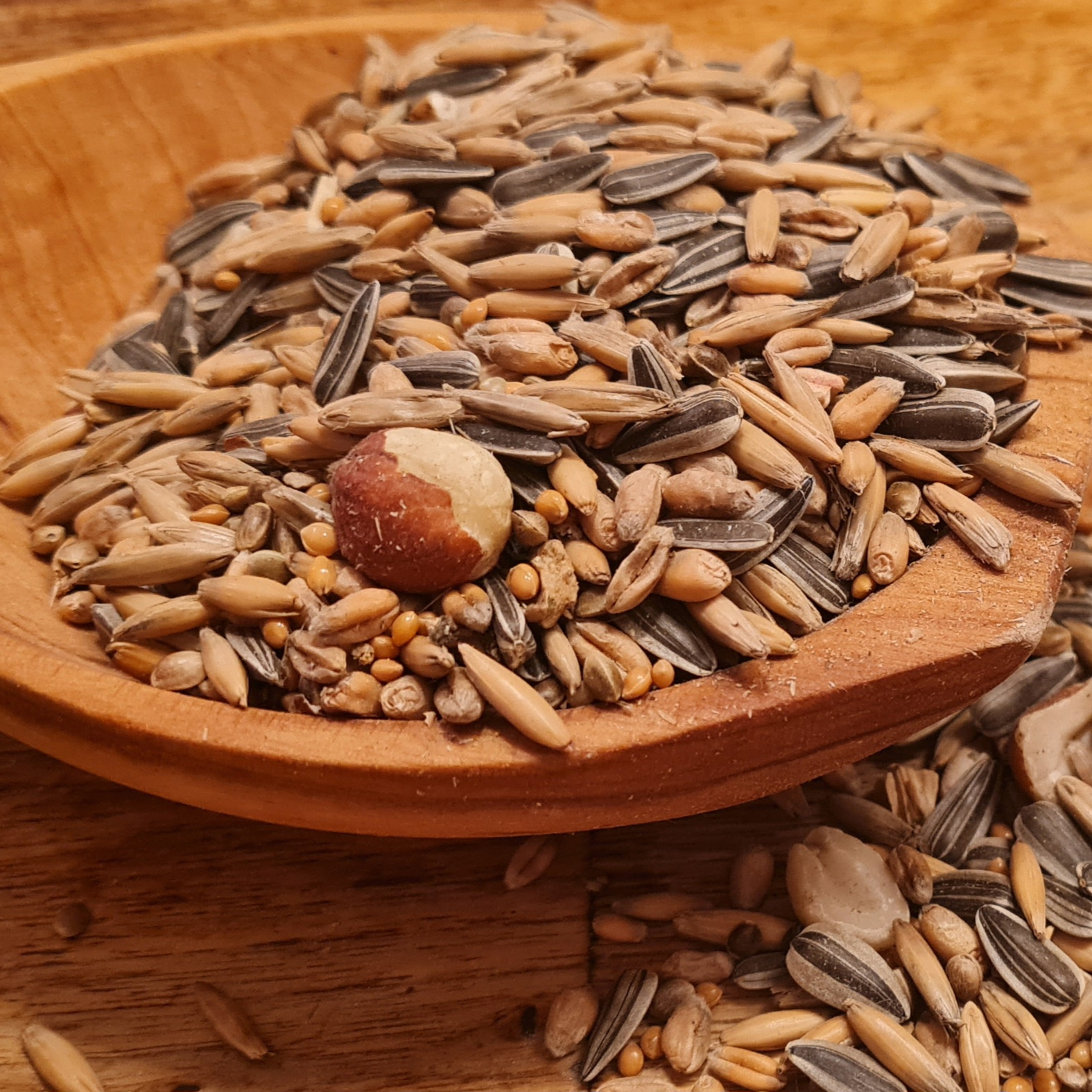 Innehåller: Havre, Solrosfrön, Vete, Hampa, Hirs, Nötter.